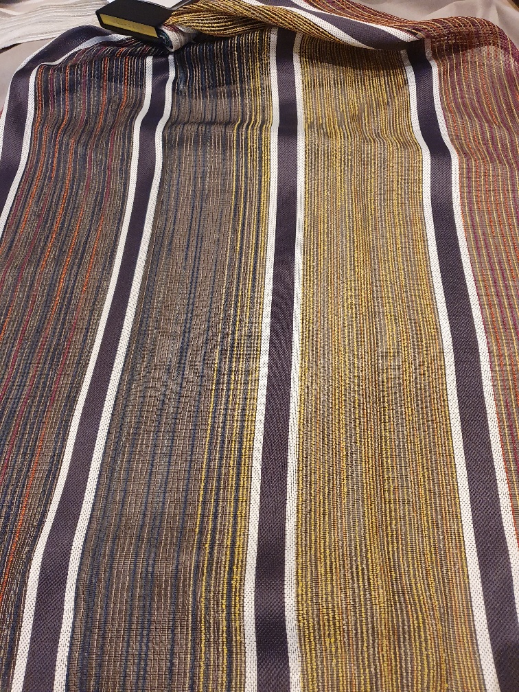 Eine freche Gardine für eine moderne Einrichtung mit bunten Blockstreifen in dunkelgrau, ocker und rostfarben… Der Stoff eignet sich hervorragend für Vorhänge die den Raum schattig aber nicht verdunkeln soll.