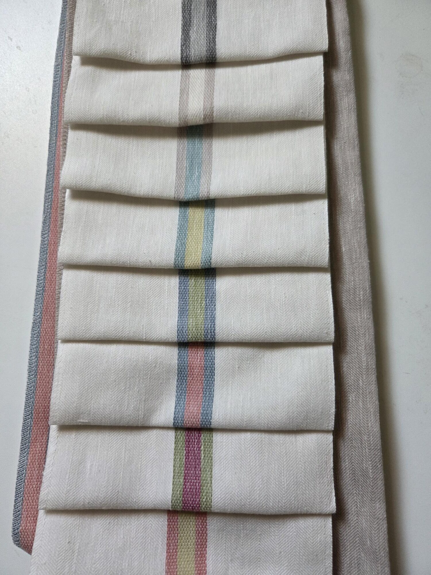 Ein lässiger Vorhangstoff für eine ungezwungene Fensterbekleidung.Der Stoff bietet Sichtschutz ohne groß zu verdunkeln.. Herrlich weich im Griff. Die Oberfläche ist matt, der Streifen ist durchgewebt.Der Abstand der Streifen beträgt 8cm, die Streifen sind 2,5 cm breit.Der Stoff eignet sich für Vorhänge, Raffrollos, Kissen oder Tischwäsche.