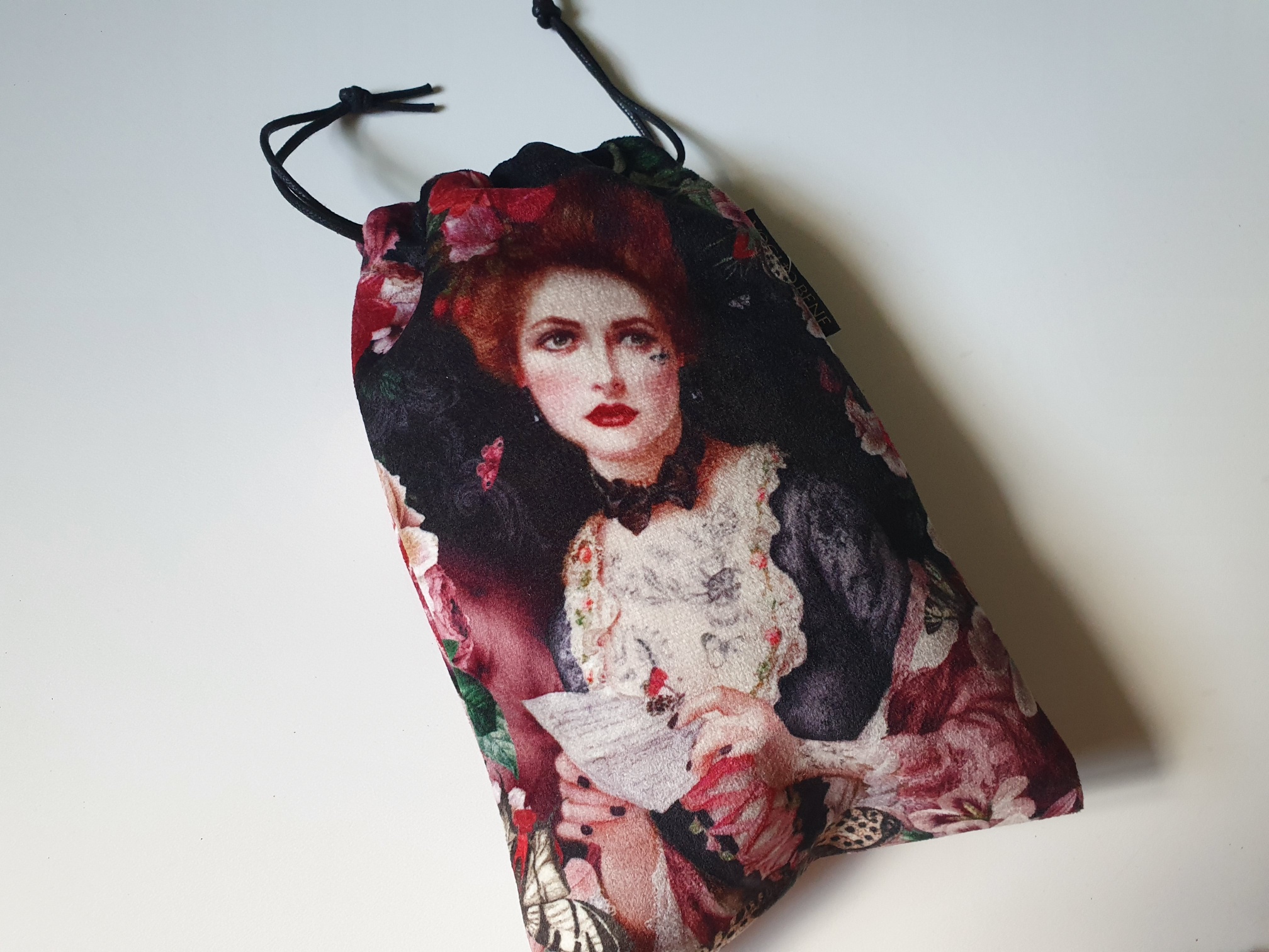Ein kleiner Velourbeutel für Geheimnisse…für Tarot-Karten, Briefe oder Schmuck. Der Beutel ist 19x13cm groß mit einer Kordel zum zuziehen.