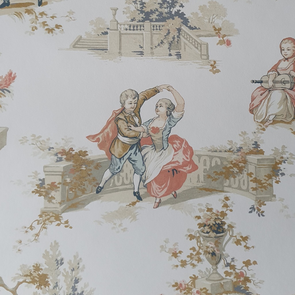 Eine klassische Vliestapete aus der Toile de Jouy Reihe mit anmutigen Motiven.