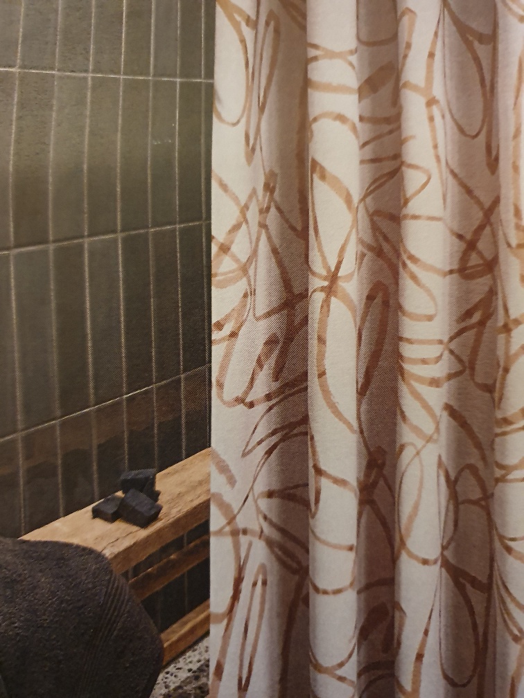 Ein Duschvorhangstoff ungenäht. Sehr weiche Ware, Oberfläche wie Baumwollstoff und trotzdem wasserabweisend.