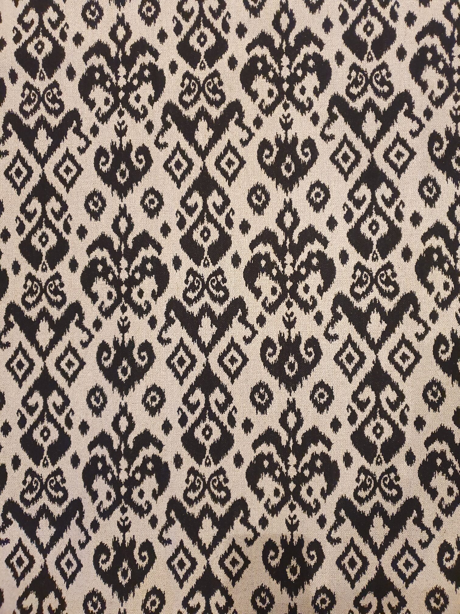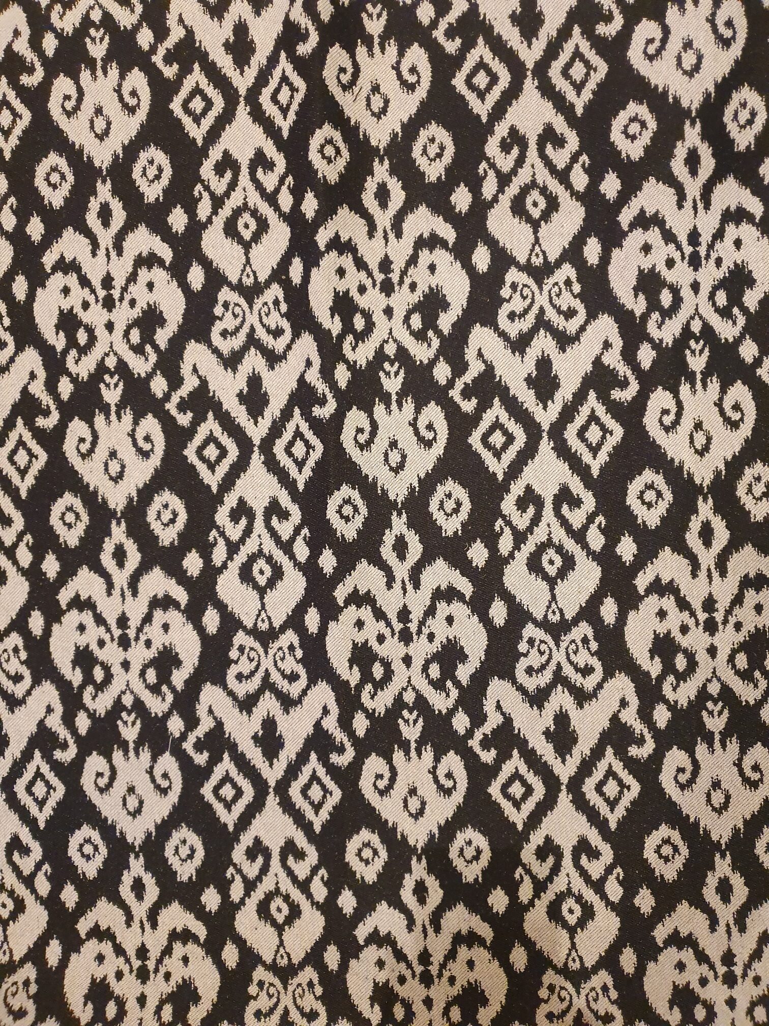 Eine feste, durchgewebte Ware mit Ornamentmuster. Sehr schön für schwere Vorhänge, Raffrollos oder Kissen.