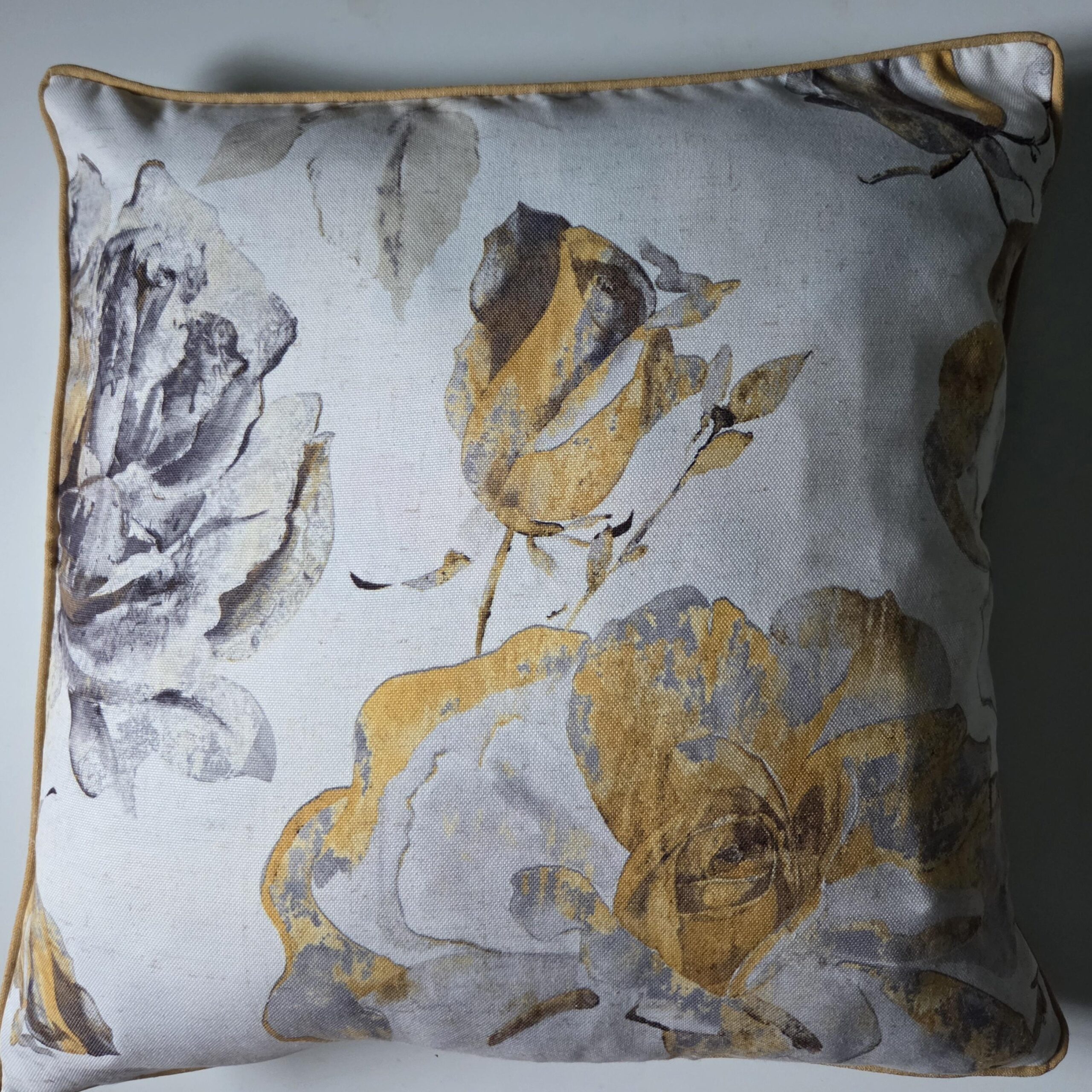 Große KIssenhülle mit einem modernen Design. Muster vorne und hinte mit einer Paspel umsäumt.