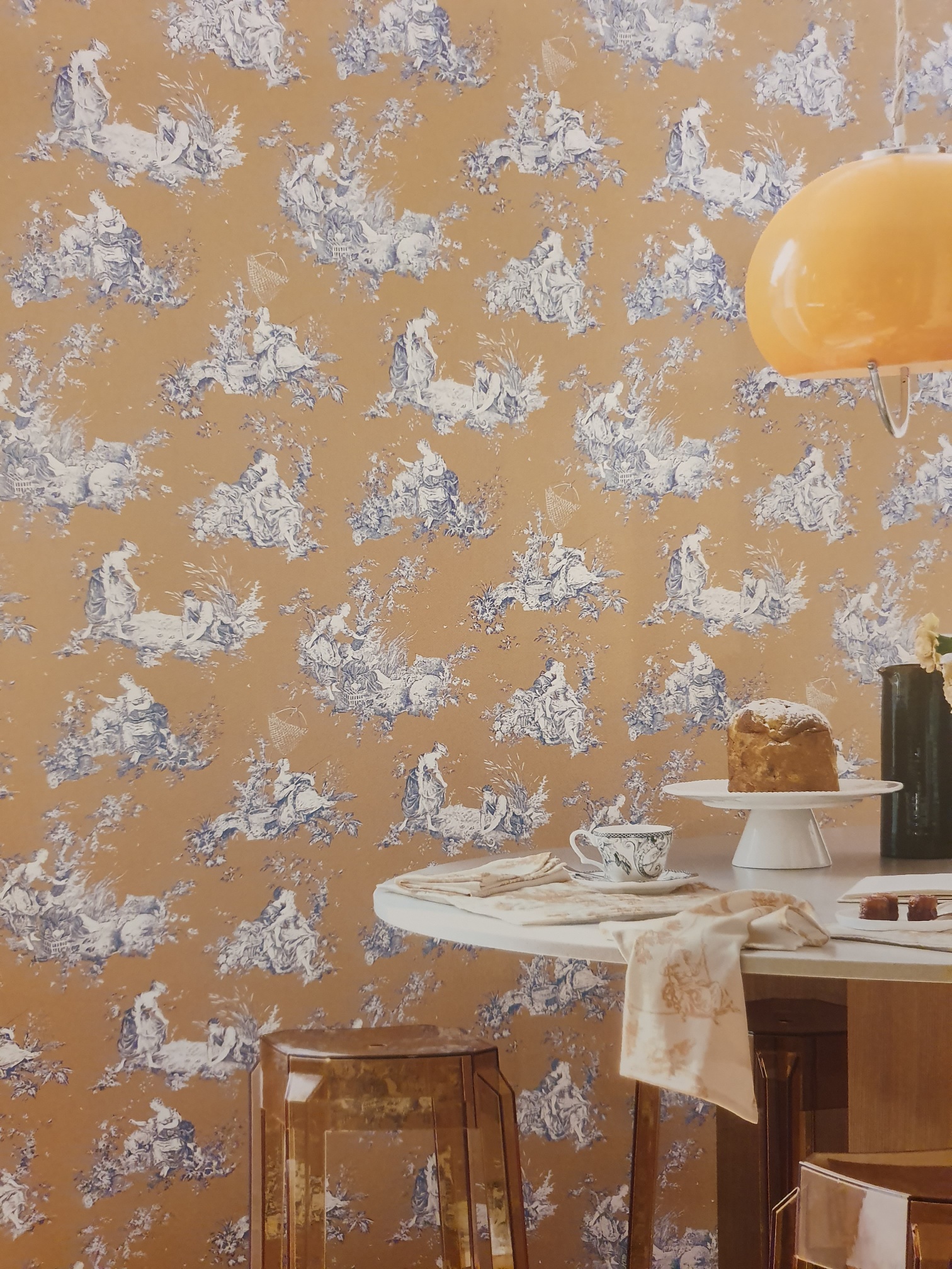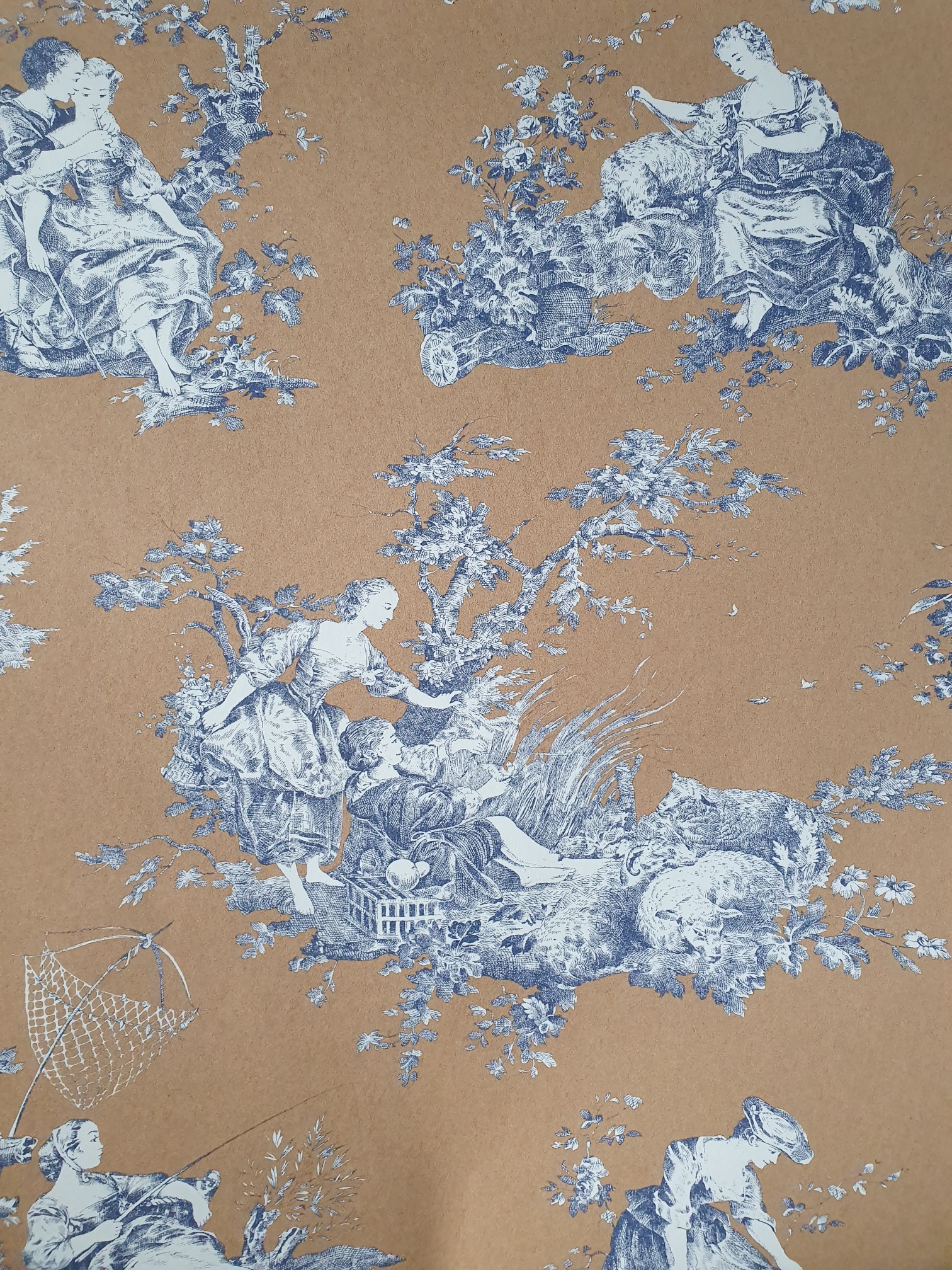 Eine klassische Vliestapete aus der Toile de Jouy Reihe mit anmutigen Motiven.